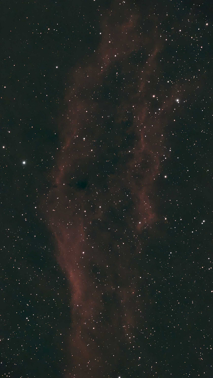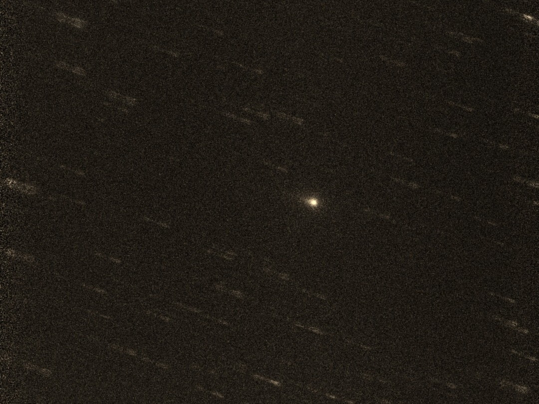 Even at its closest approach, 3I/ATLAS was so faint that two hours of data had to be stacked to reveal it on a 50mm aperture telescope. As the object does not move at sidereal rate, the background stars trail.
